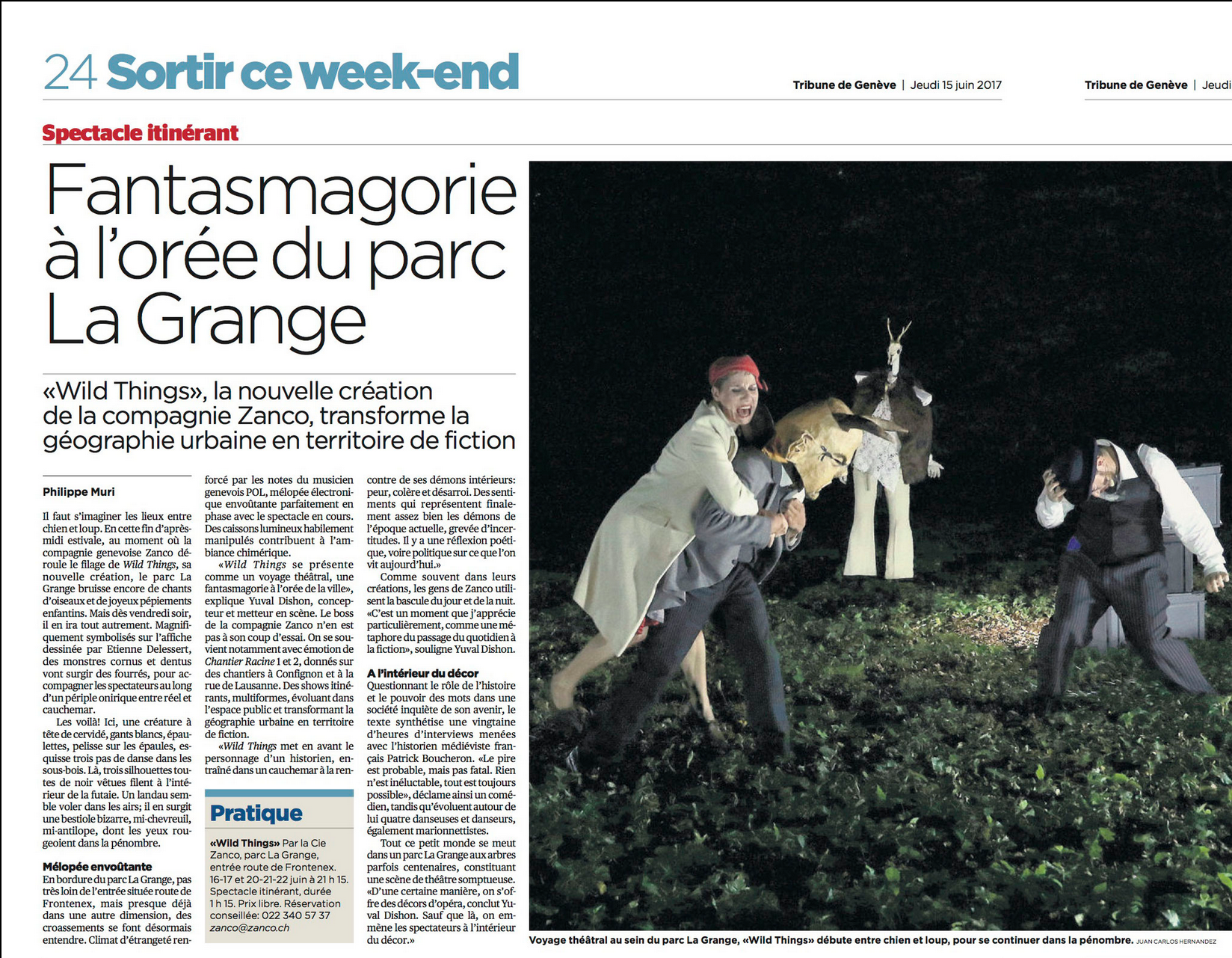 "Wild Things" est un voyage théâtral, une fantasmagorie à l’orée de la ville entre réel et cauchemar. Un historien est confronté à ses démons intérieurs qui sont aussi les monstres de notre monde en désordre. Six danseuses et danseurs masqués, comédiens, manipulateurs d’objets, violoncelliste entraînent le public dans un spectacle itinérant aux images envoûtantes.